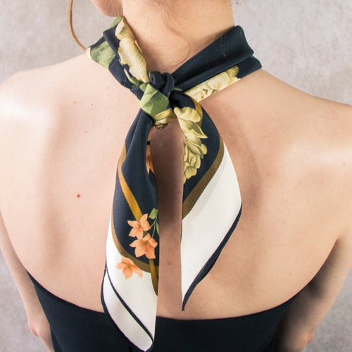 - Choisissez parmi une multitude de motifs floraux pour trouver le carré de soie qui correspond à votre humeur.